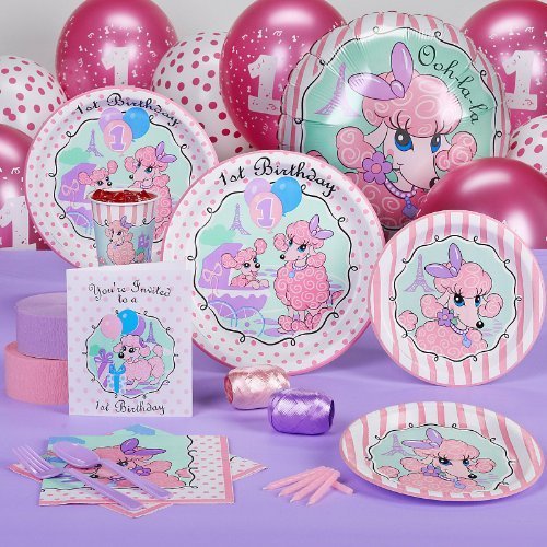 Pink Poodles in Paris 1st Birthday Standard Party Kit for16 Features is very good!
