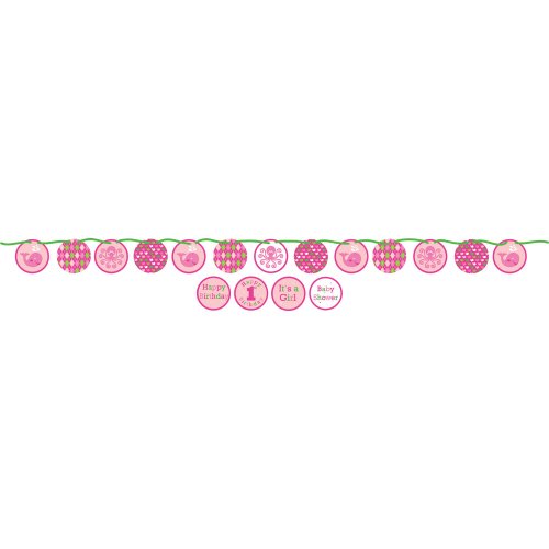 Our Preppy Pink Party Banner is stylish enough to display all year long! Surprise your preppy little girl by hanging the banner in her room to see when she wakes up on her birthday, then display it at her birthday party. Make a big splash by complementing this pink party banner with our matching Preppy Pink Party supplies.Includes circular ocean-themed cards strung across a 5.5-foot green ribbon.Stickers are included to customize the banner for a first birthday, birthday announcement or baby shower.