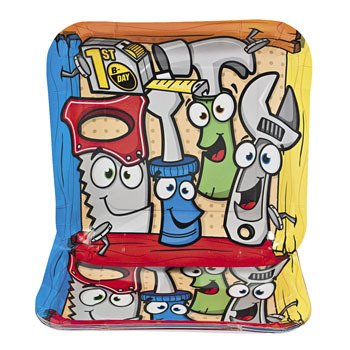 1st Birthday Tool Party Square Dinner Plates. Create the cutest birthday party you ever saw with these 1st Birthday Tool Party birthday supplies. Perfect for constructing an adorable first birthday party you'll want to stock up on these cute and colorful 1st Birthday Tool Party Square Dinner Plates to help all your party guests pile on the food and fun to help celebrate your little one! Paper. (8 pcs. per set) 8 3/4 OTC